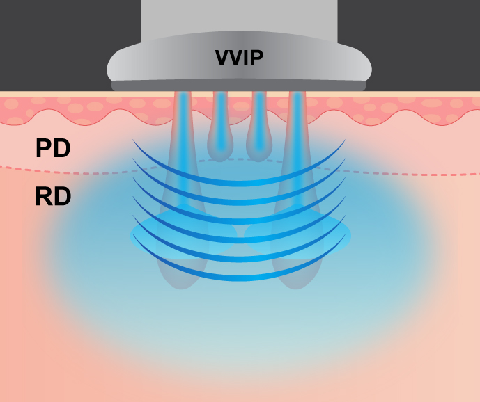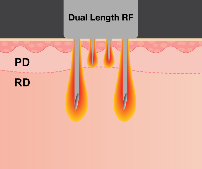 一般膠原增生儀器主要針對真皮底層(網狀層)的結構性鬆弛下垂,而DoubleTite能夠針對性改善真皮淺層(乳突層)的膚質老化問題,重塑皮膚的光澤度、細緻度、柔軟度及彈性,全面實現膚質年輕化。