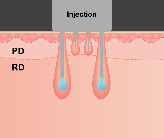 同時激活真皮淺層(乳突層)及真皮底層(網狀層)的膠原蛋白增生