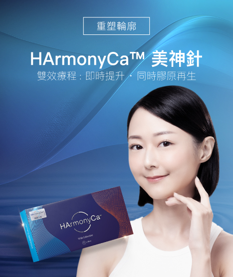 HArmonyCa™ 美神針是由全球藥廠巨頭 Allergan Aesthetics 研發的雙效混合動力針劑。突破性地結合了兩大核心成分:70% 透明質酸 (HA) 及 30% 鈣羥基磷灰石 (CaHA)。透明質酸提供即時的支撐與物理提升,針對中面部凹陷及下垂進行精準重塑;鈣羥基磷灰石微球則在皮下深層持續激發纖維母細胞,啟動長效膠原蛋白及彈力纖維增生機制。